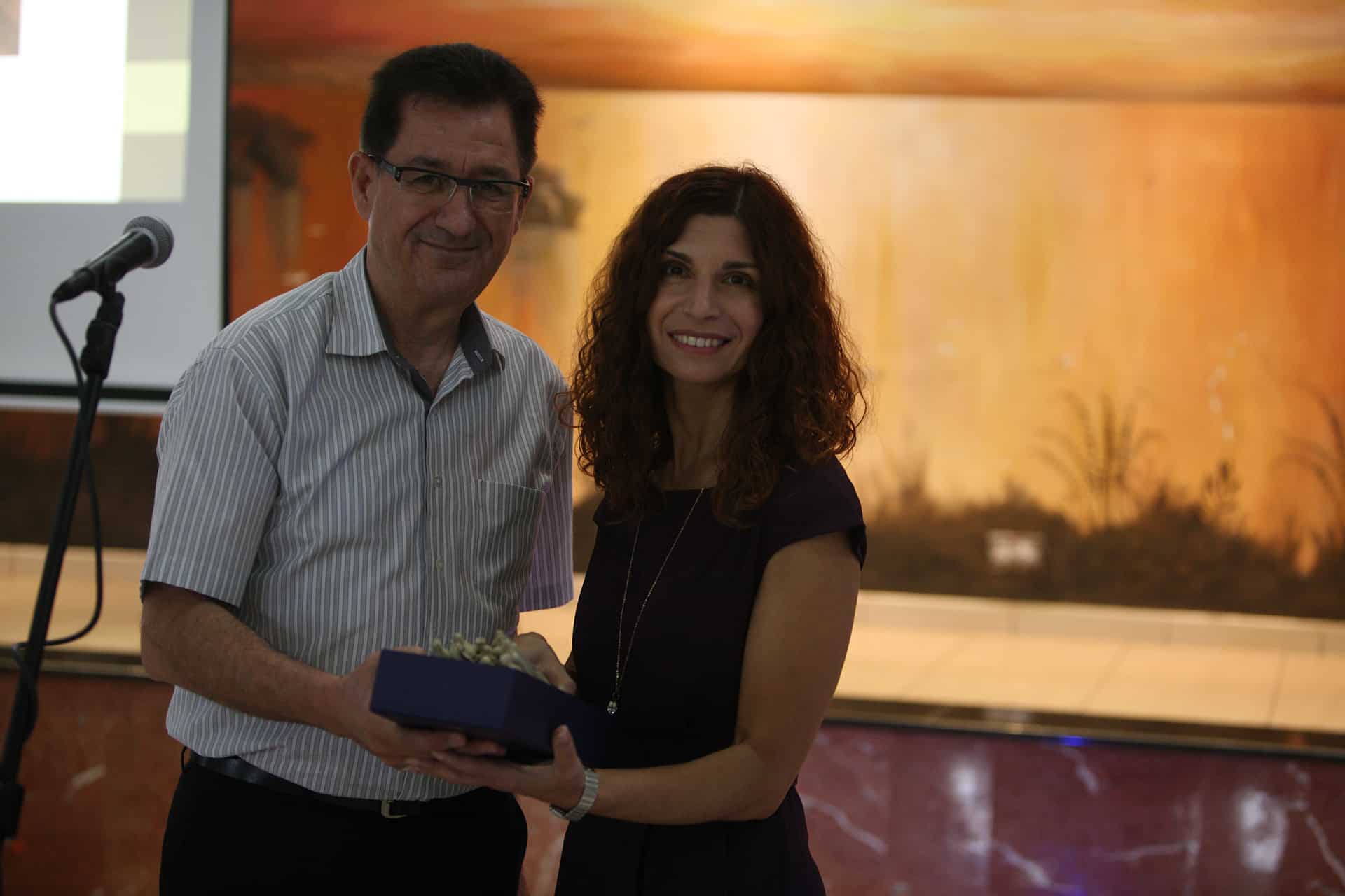 Ο Πρόεδρος του Κοινοτικού Συμβουλίου Βατυλής κ. Γιώργος Σταύρου επιδίδει το κεραμικό έργο τέχνης στην Δρ Παναγιώτα Ποϊράζη.