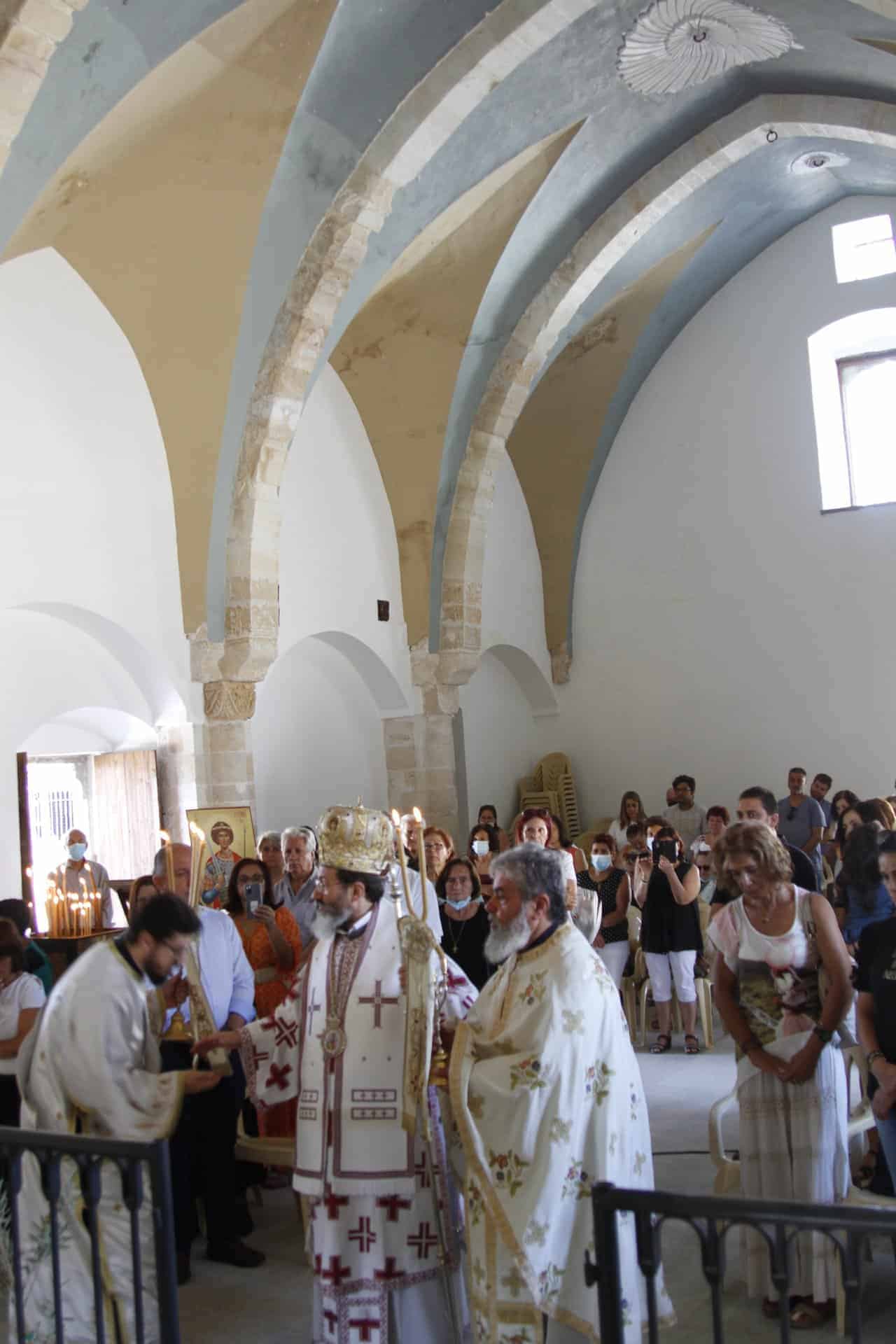 Η πρώτη θεία λειτουργία μετά την αναστήλωση του ιερού ναού Αγίου Γεωργίου Βατυλής τελέστηκε την Κυριακή 26 Ιουνίου.